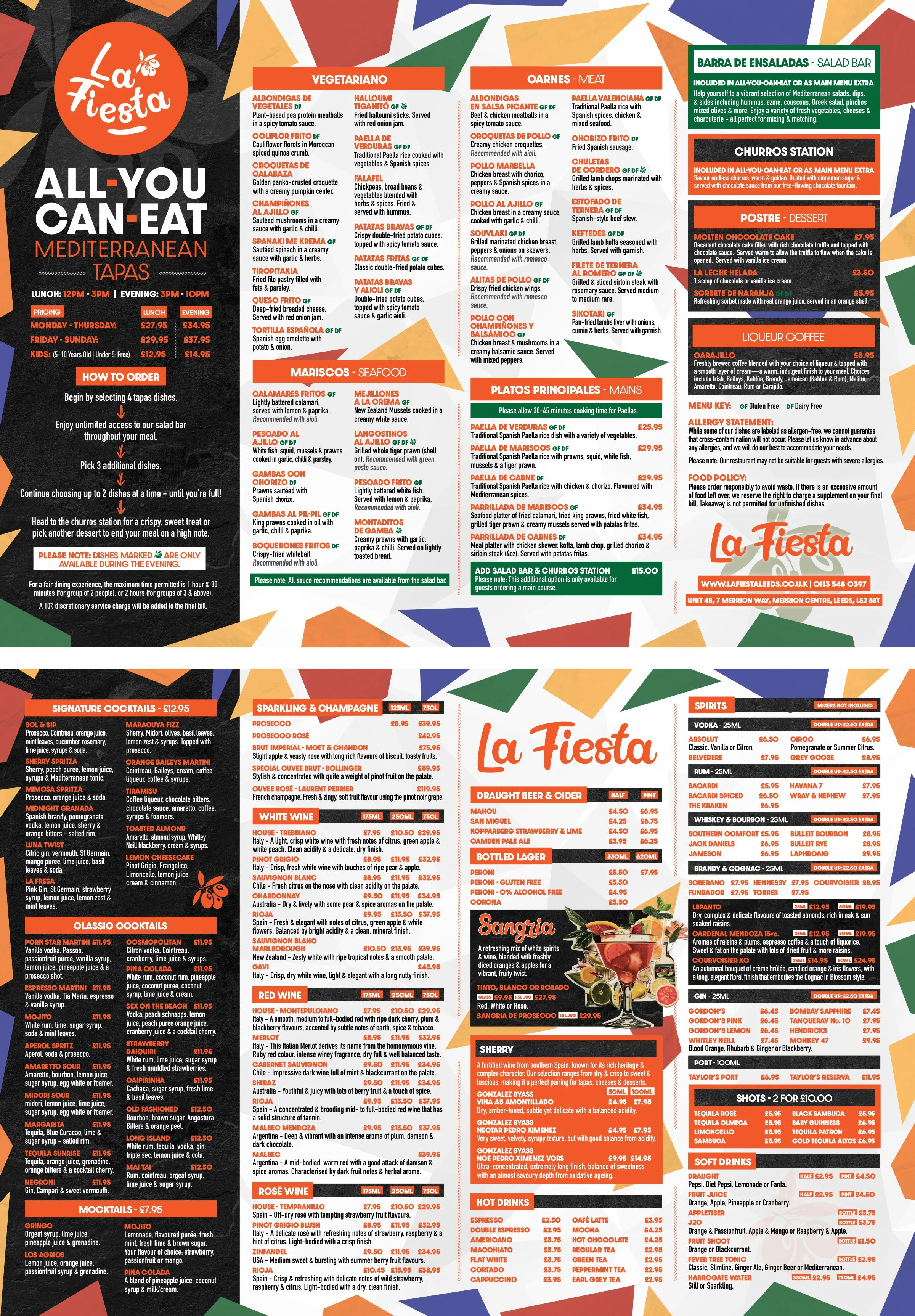 This price includes UNLIMITED freshly cooked tapas, small plates, salad bar and crispy churros served with chocolate from our flowing fountain.